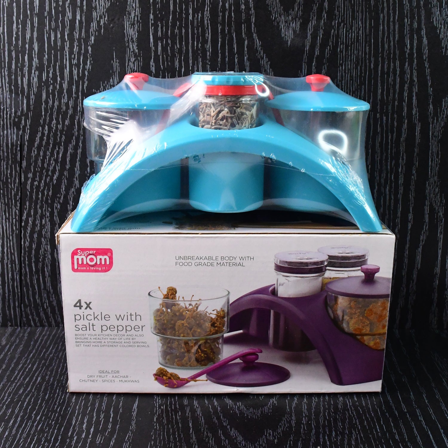 4-Piece Set: Includes four containers that are ideal for storing pickle, salt, pepper, or other condiments.