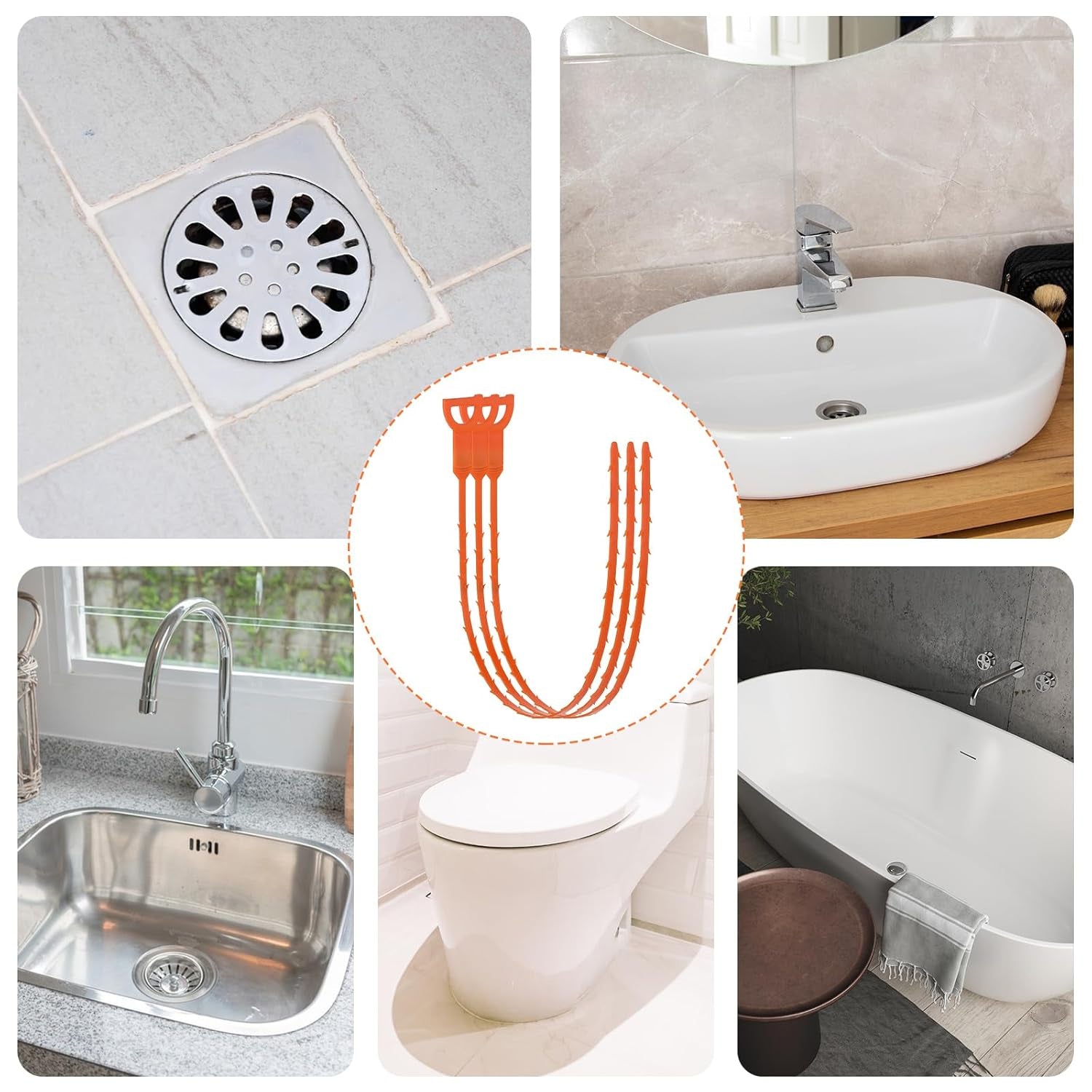 Usage: Insert into drain, twist slightly, and pull out to remove debris; rinse and reuse