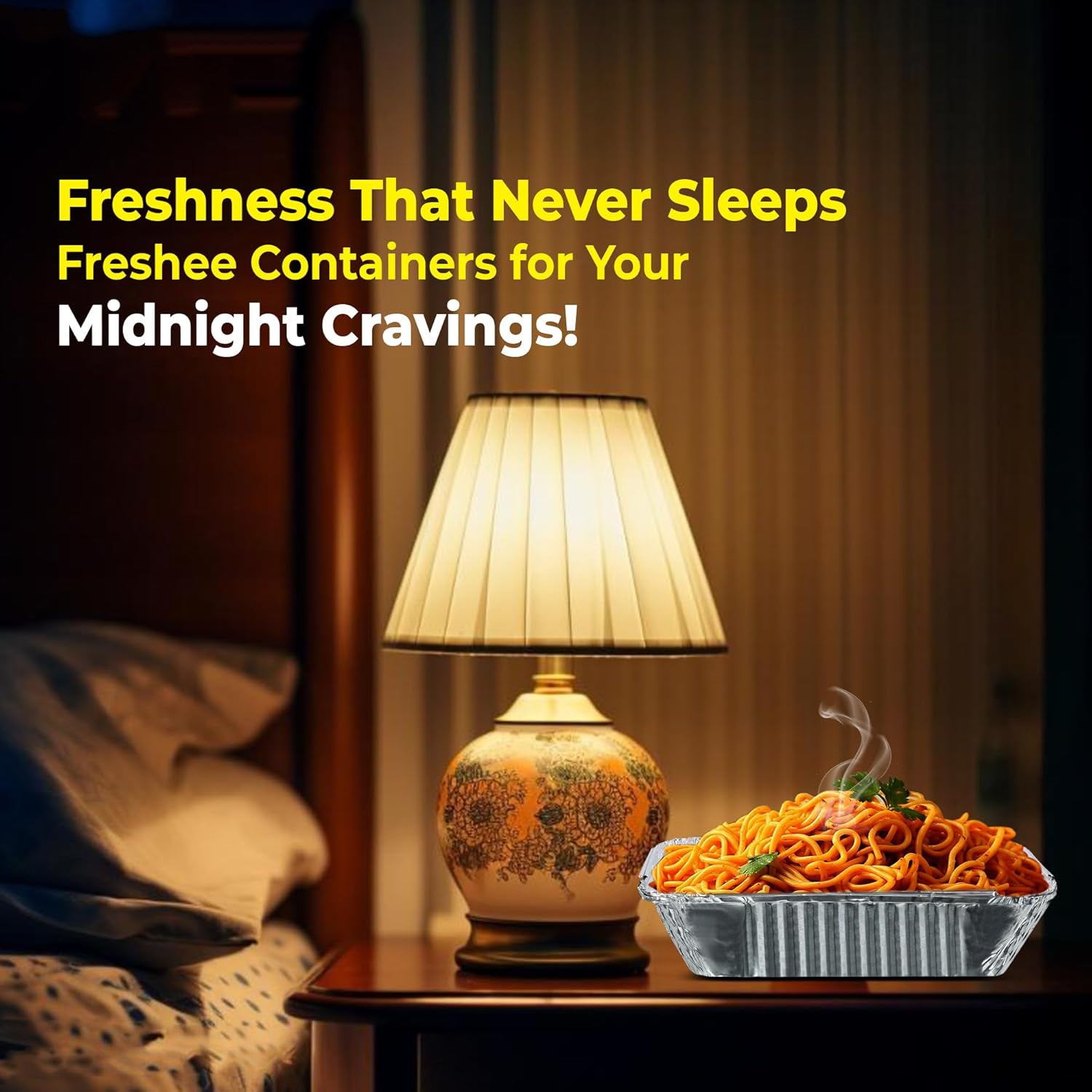 Freshee Aluminium Food Container with Lid — 450 ml — 10 Pc Disposable Foil Trays for Takeaway, Meal Prep & Oven Use — Leak-Resistant, Oven-Safe & Recyclable
