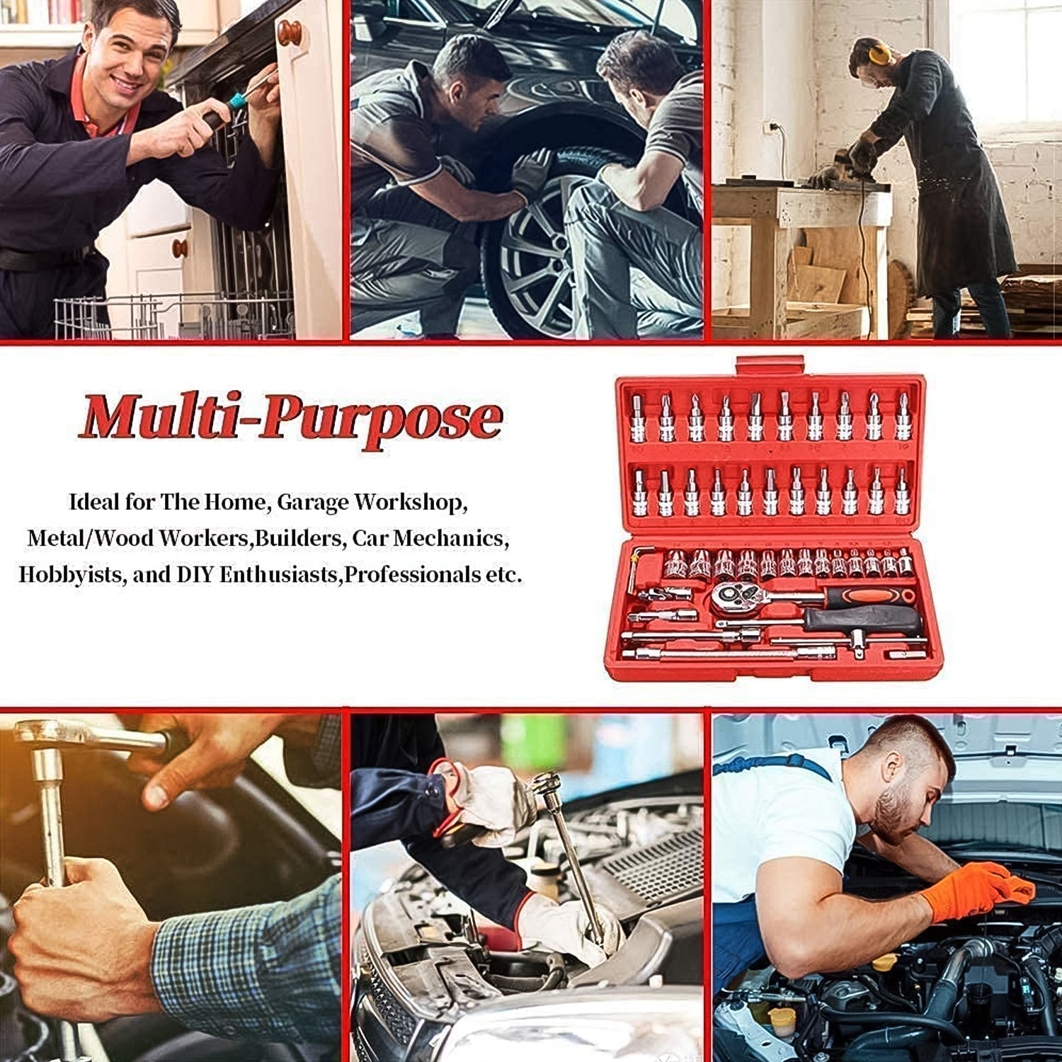 - 46 pieces tool set placed in this kit, very practical and matches your most working needs.